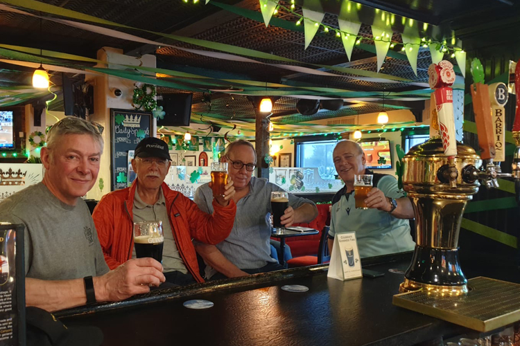 They were very proud of the fact that Prince Harry "and about 30 of his friends" had dined there while he was on detachment with the military somewhere near by. I had Spaghetti Carrettiera—garlic, parsley, crushed hot peppers and olive oil which was excellent as were the jalepeno poppers starter. After dinner, Dennis introduced Scout the team mascot. He gets passed around and whoever has him makes the rules. S/He woulda shoulda gone to the self-appointed leader of the pack Leo, but because my as-yet-unnamed granddaughter was born today, the honor went to me. As he was leaving the restaurant another patron stopped at the table to say "when you guys all got served your food, the restaurant went quiet." I guess we were having a good time—and then we were hungry.