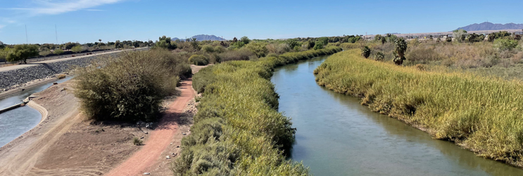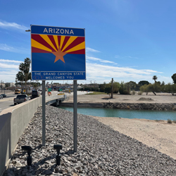 We crossed into Arizona at Yuma, which also meant crossing the Colorado River. I was so stunned by the pathetic little stream it had become that I took it's photo in case it was the Colorado, but I did not think it really could be until we passed the Welcome to Arizona sign at the far side of the bridge removing any doubt.