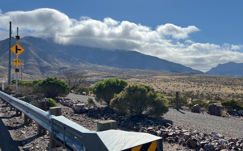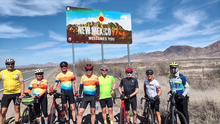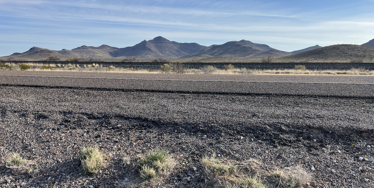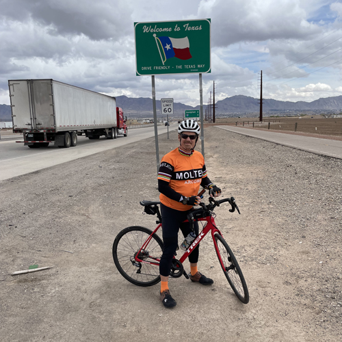 Dennis (mostly) and Bobby loaded bikes into and onto the trailer and the van while we finished eating, and then we hit I-10. The first ten plus miles were the best, as the fully-laden van toiled up the thousand foot climb to the foot of Sierra Blanca a striking and beautiful bald mountain just north of the highway. As a bonus we got to be questioned by Border Control because for once we were traveling in the same direction as would-be aliens, and because we were in the van and not scooting around the traffic on our bikes. The officer asked Dennis if everyone was a US Passport holder and that was the sum total of the interrogation. Dennis's honest face must have done the trick, because otherwise we were a suspicious looking (and smelling) gaggle of predominantly male and unusually fit passengers who might quite reasonably have aroused the curiosity of a bored Border Patrol Officer.
