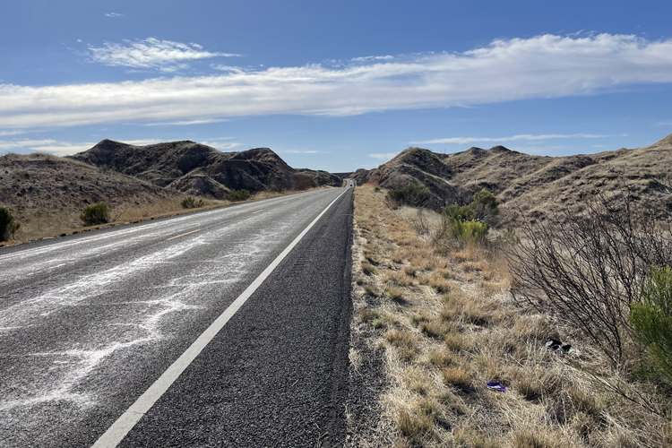 I too remember sad jetsam, and pondered on the same question. It was in this same isolated stretch that Bobby saw four immigrants rushing the border. Which is one reason why our crew are so keen for us to ride together. As if to cap off this picture of desperation and desolation, this was also where we saw our first and thankfully only, wolf road kill.