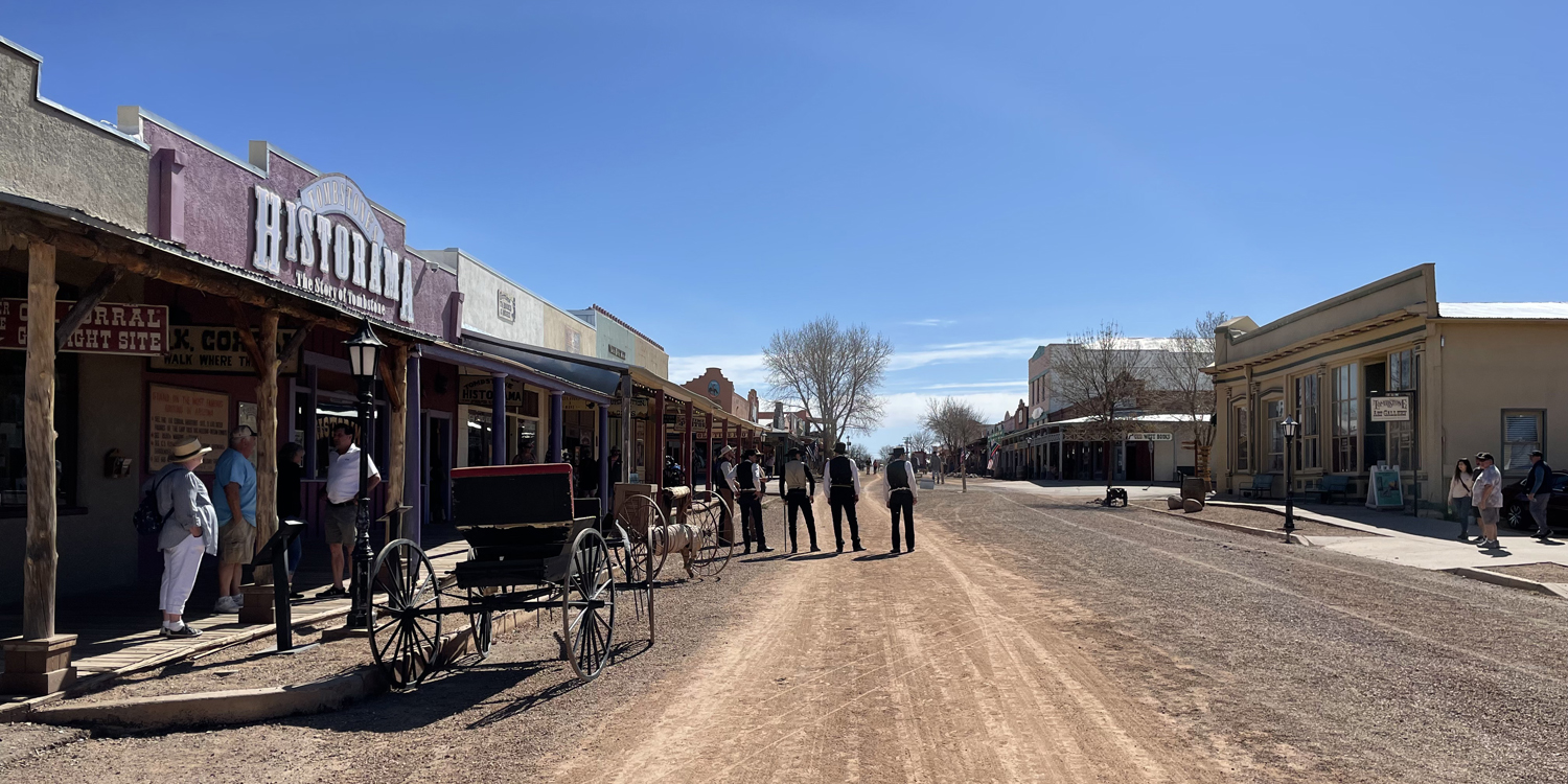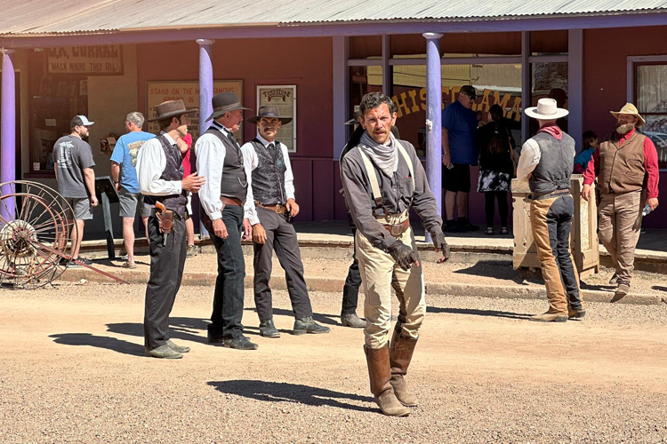 I was surprised by how nicely done Tombstone's main street was. Dirt road, every store "authentic" and with suitably costumed staff. The gun fighters milling about in the street turned out to be "the good guys" in the OK Corral reenactment show we were waiting to see. But between shows they just hang out in the street waiting for tourists like me to pose with them. I preferred the hanging out in the street to the actual show, but that's just me.