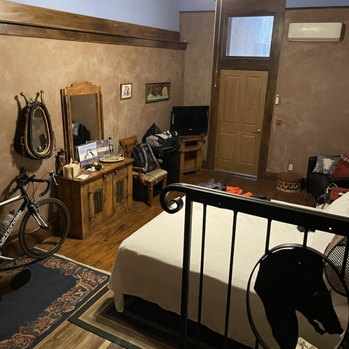 I sent Chris and Grimmy off to look for supplies with which to restock the happy hour cooler, while Nick helped me carry my bags and bike up to my first floor room. Man I was tired. But after an invigorating long hot shower we reconvened in the bar which as advertized was crammed between the hotel and the restaurant. What a wonderful hour or so. It is hard to express the power of the pride and the gratitude one feels when people go to such lengths just to show up in support. I didn't need us to talk, though talk we did, just sitting in their company in this strange place so far from home provided immeasurable comfort. One of my absolute favorite moments on the trip.