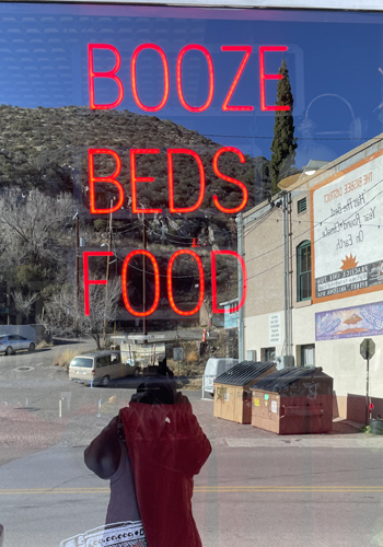What a wonderfully funky place the hotel turned out to be. Constructed in 1906 and restored in 1986 in Old West Victorian style, the Bisbee Grand Hotel Bed and Breakfast is "an elegant escape back to the turn of the century. Each of our seven suites and six rooms is elegantly appointed with antiques, fine art, and extremely comfortable furniture. No two are alike and there is a theme sure to suit any taste." Among its other eccentricities was the room layout: my suite and Billy-Bob's were completely separate from the rest of the hotel with their own front doors right on the sidewalk
