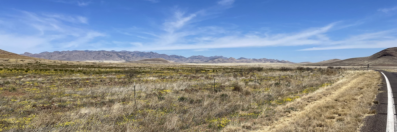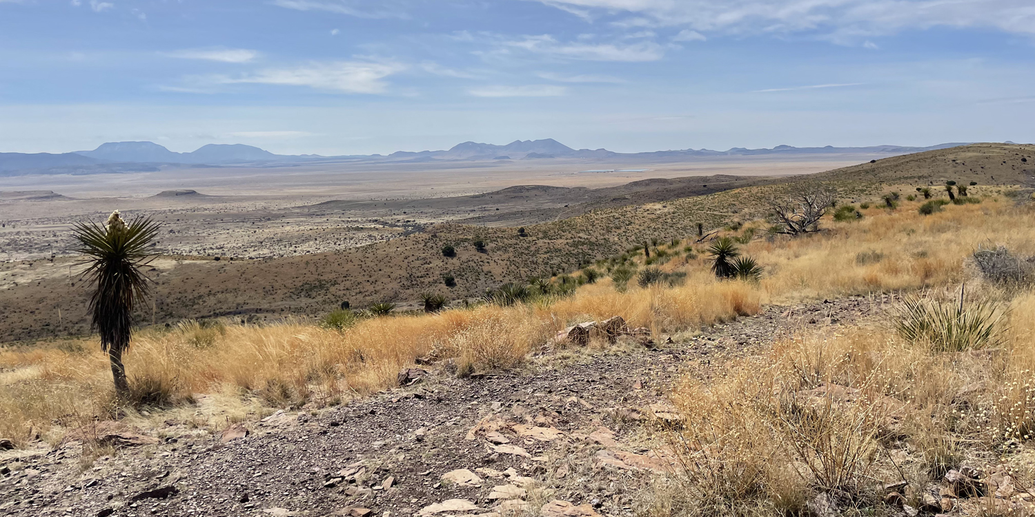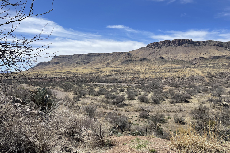 I like this description I stole / adapted from the Texas Highways website: From a distance, the Davis Mountains float above the Chihuahuan Desert like a smoky mirage, rising up in green slopes punctuated by pine and oak trees, carpets of golden grasslands that wander through the canyons, and jumbles of rocky spires and escalating peaks. At more than 8,000 feet they are a dramatic contrast to the flatness of the surrounding desert.