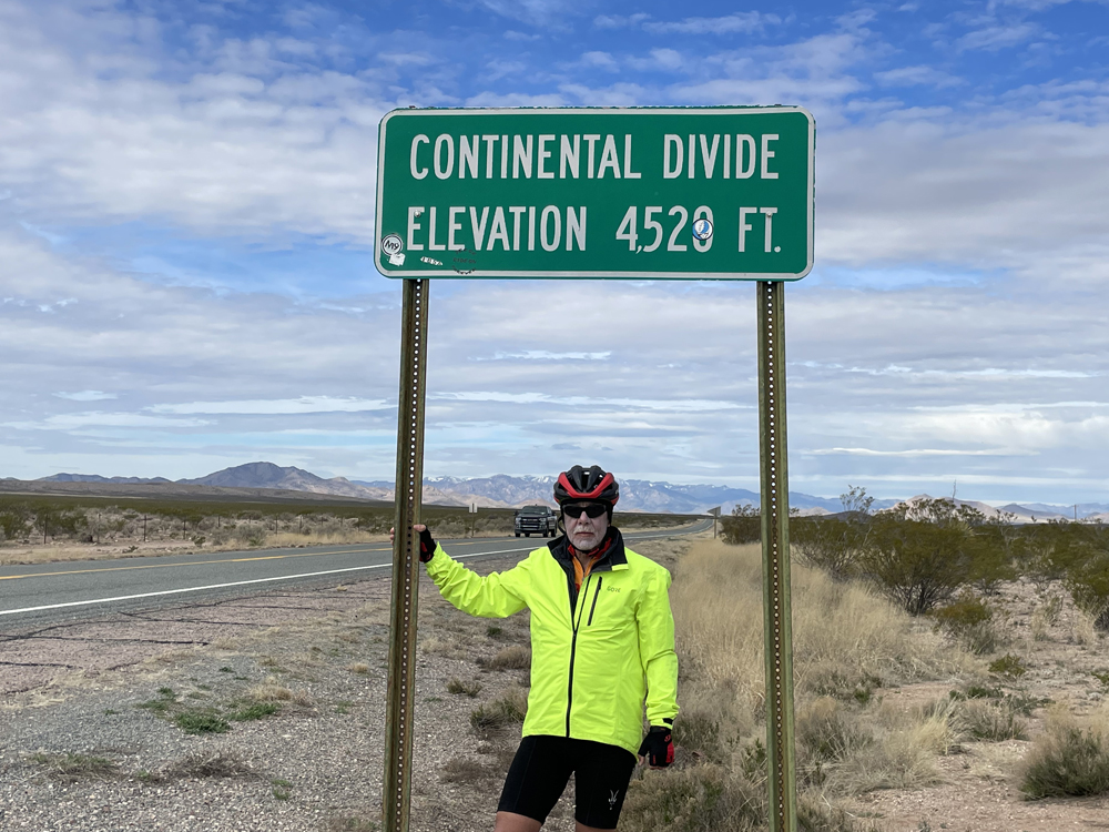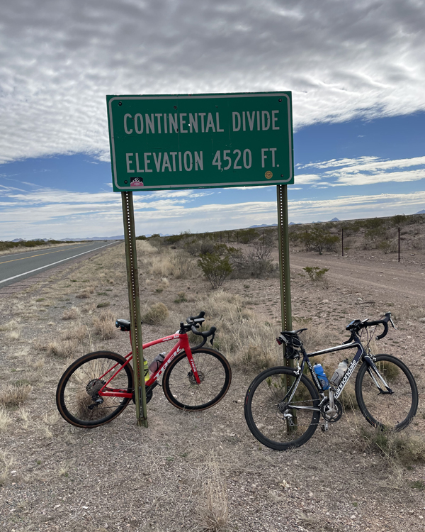 The Continental Divide (4520ft) was at about the 30 mile mark and about 700 miles into the trip. Unremarkable but significant. Now were were officially in MMFN (the Middle of the Middle of F🤬ing Nowhere). The shot with the bikes is the "official"one, with the camera facing east. The committee said the view west was much more spectacular (true fact) and we should use that but I couldn't. I think a life time of reading and watching movies/TV taught me left-to-right is moving forward, leaving home, right to left is going back. Looking straight is going forward unless there is evidence to the contrary, such as a mirror or the camera panning around. It makes a big difference: "I climbed this hill, I didn't coast down it!" We were travelling east, this is the continental divide, looking east, looking for Florida.