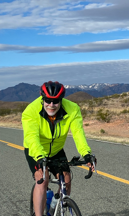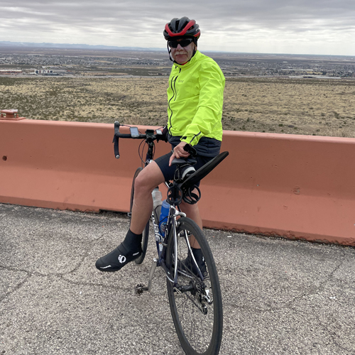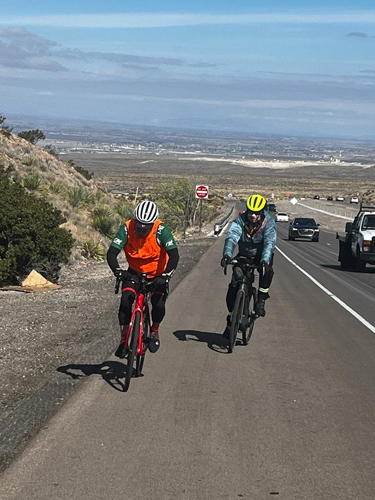 The Pass at El Paso is a six mile 1400ft climb over Franklin Mountain from West El Paso to East El Paso. I now realize that my loneliness on the first day's long afternoon climb was not because of any difference between my abilities and those of the rest of the team. There is no peloton or pace line on big ascents, everyone just grips their handlebars between their teeth and cranks at their own pace. As we approached the base of the climb, I happened to be fairly near the front, only (I think) Dave-the-younger, Craig (obviously), and Billy-Bob who had set off much earlier. I knew I had no choice but to keep cranking. I feared that if I stopped I might physically not be able to start again on the steep gradient, never mind the mental collapse.