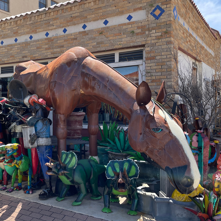 Everyone who'd signed the visitor book put Big Bend as their destination. I smugly wrote St Augustine FL as mine. Clearly I was not going to make it to Big Bend, but my new friend recommended "to Ferguson Motors" an old garage converted to an art gallery-cum-coffee shop just up the street. There was a palpable change of vibe as soon as I stepped through the door. If all of Texas gave off a MAGA vibe, suddenly I was in Greenwich Village, or Venice Beach. So I wandered through there for a few pleasant minutes, as always contemplating what I would buy if I had the money and space. And as always not much grabbed me by the wallet, but who cares, that's not really the point is it?