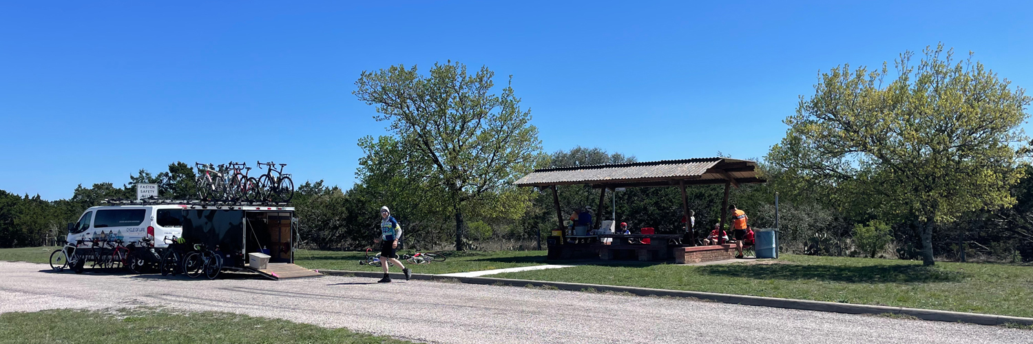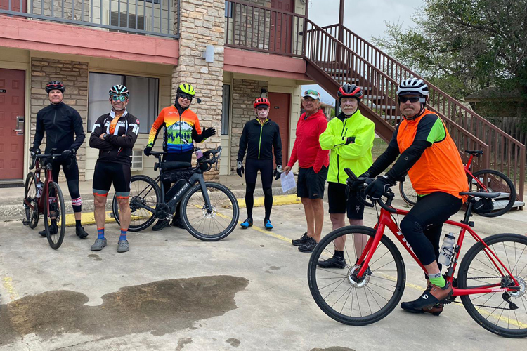 Right on schedule, as we made the left turn at a T-junction for the last 20 mile stretch to Camp Wood, the Harley's started to appear, and several herds of them went by on our way into town. We all noted somberly that a right turn would have taken us into the town of Uvalde (19 children and two adults were killed in a shooting at Robb Elementary School in Uvalde May 24, 2022 the deadliest shooting ever at a Texas public school). The headwind made its customary appearance, but it's heart was not in it, so despite several strong bursts, it was basically a non-issue, and we rolled into Camp Wood at around 3p.