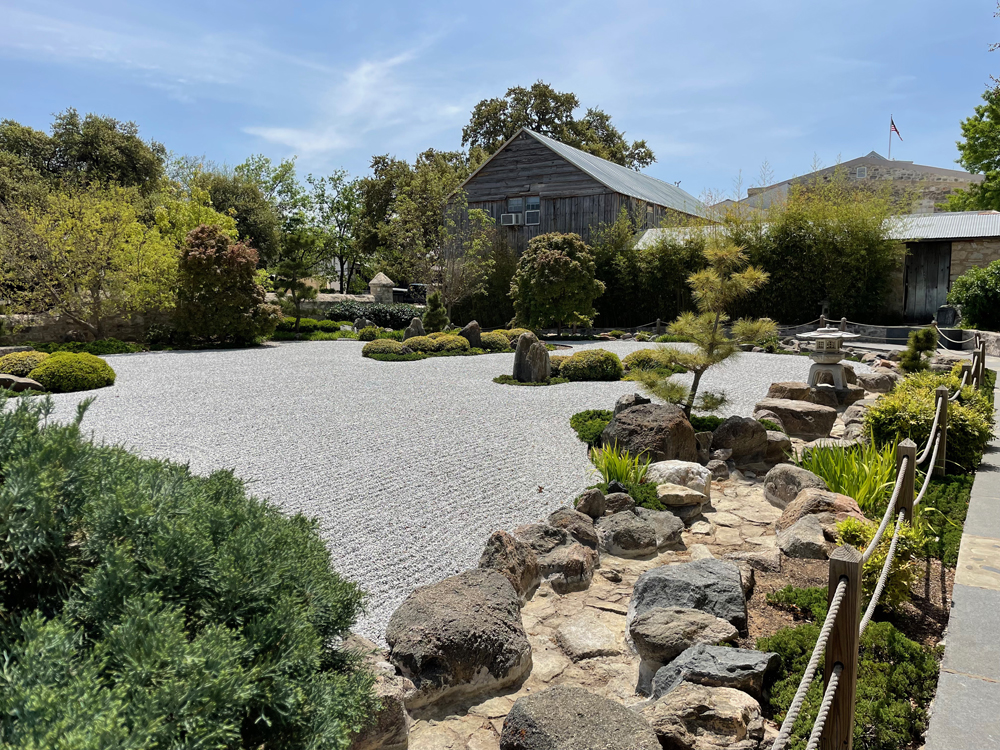 The NMWP Exit door lead through the Plaza of the Presidents (featuring ten monuments honoring presidents who served during World War II) to the Japanese Garden of Peace, gifted the museum by the Japanese government on May 8, 1976, the 130th anniversary of the founding of Fredericksburg. I love Zen Gardens, finding them, yes, peaceful, calming, but also extremely powerful, even for a fairly non-spiritual chump such as myself. They are to be experienced rather than simply visited. This one was no exception, but perhaps not surprisingly it couldn't hold a candle to those I'd experienced in Kyoto and Tokyo. A lovely peaceful way to end the visit nevertheless.
