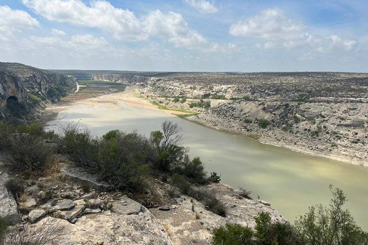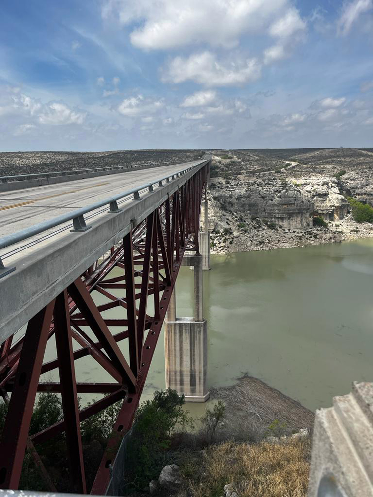 The Amistad Reservoir (part of another National Park I had to ride right by) was a lovely view and the largest body of water we'd seen since the Pacific. It was in view and along side for the best part of 10 miles before finally crossing it on the Governor's Landing Bridge a mercifully low-level affair that allowed one to enjoy the view without worrying about plummeting over the side.