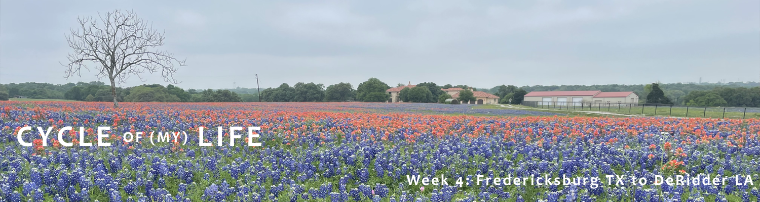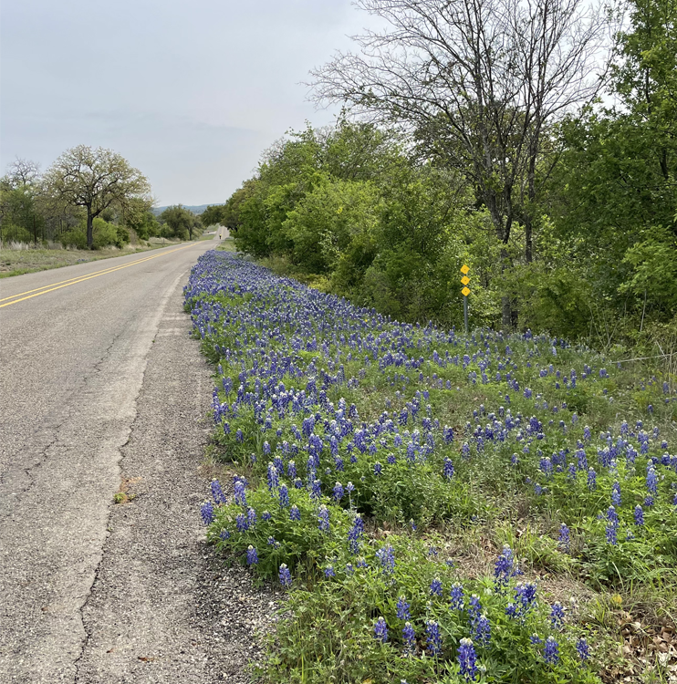 Word of the week: wildflowers. Hundreds of miles of them. Blue Bonnets, Indian Paintbrush, Calliopsis, Desert-Chicory, Evening Primrose. Patches where it looked like someone threw a paint can out of a car window, ribbons of them in different colors sometimes so thick it was just a carpet, and then entire fields of them. Sometimes the flowers were so prolific and the traffic so light that we could smell the flowers. Other times the reverse.