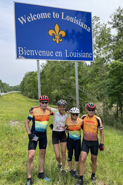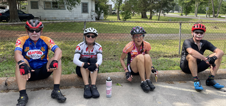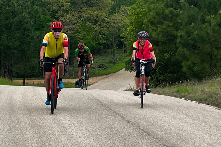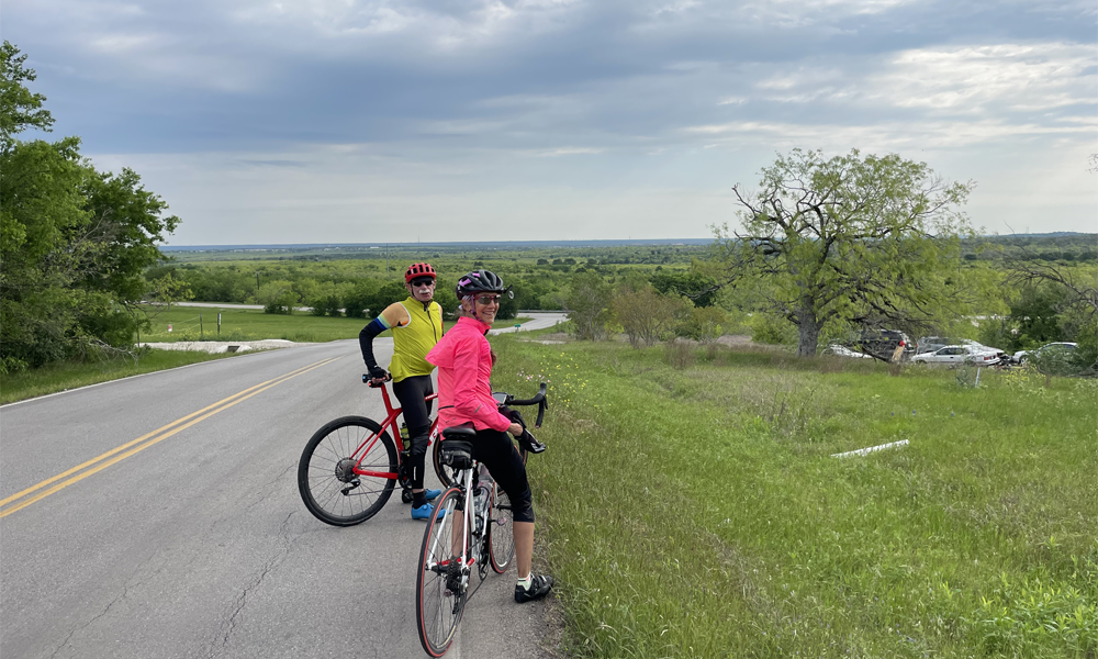 More powerfully, the team changed up, with Top Gun Craig leaving as planned, to be replaced by Shelley a "much slower rider" who has therefore been assigned to join "The B Team" (myself and Dave-the-Elder, who bring up the rear). It is a tremendous act of courage for her as she is picking up where she left the 2022 ride after two of her buddies were knocked down by a hit-and-run driver in Austin. One was seriously injured, but the other died of his injuries three days later. They have never found the driver. Half the team gave up on the spot, understandably, and Shelley swore she would never ride again. But here she is, facing her demons. We do not ride through Austin any more.