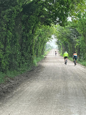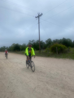 It was extremely dark, with low black clouds threatening to open up at any second. Twenty miles down the road we bumped into someone who had just driven from Giddings (so set off an hour later) and indeed it was now raining cats and dogs. But once more, not actually raining on us until about lunchtime when a shower came through, giving us a reasonable soaking, but we were only 20 miles from home by then, and with the temperature in the 80's it was a non-issue.