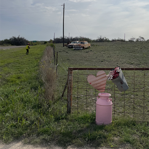 We passed a huge carcass and could not figure out what it was, but a half dozen black vultures were hard at work making it disappear. We passed a property called Donkey Oates. We passed a pair of scissor-tailed fly-catchers towing their distinctive long tails as they cavorted around the telegraph lines. And finally there were pump jacks, aka nodding donkeys, though only one of them was actually nodding. First of several sightings.
