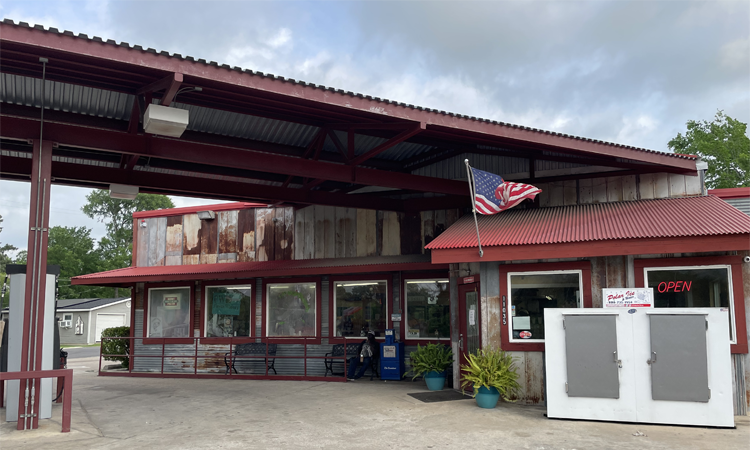 Ranch Hand Cafe was a long way out of town and had neighbors whose decor was so creepy I couldn't even bring myself to take snapshots. Toilet bowls, half buried mannequins, foot-wide spiders dangling from the trees ... but I digress. The restaurant had rustic, cowboy-themed décor that covers every square inch of the walls. From mounted animal heads to old Coca-Cola signs to the obligatory license plate wall, "everything about this place screams 'Texas'". We spend a lot of time reading and photographing all the memorabilia on the wall. They were famous for their chicken fried steak and a bunch of people had that, but I'd learned weeks earlier that that was an acquired taste I was unlikely to acquire in this lifetime. They were also famous for their portion sizes and that definitely was well founded. Every serving was hanging over the side of its huge platter. Even the sandwiches and salads looked like family-style servings set down in front of a single individual.