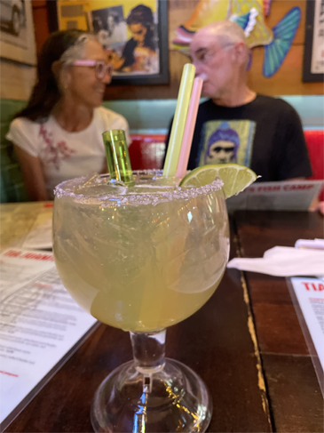 Los Patrones was a classic, typical, Mexican restaurant, with unremarkable but vibrant Mexican decor, and outstanding food, only outclassed by the margherita smoothies served in pint beer mugs. I had Carnitas Mexicanas (sliced pork tossed with guacamole, jalapeños, tomato/onion salad, beans and rice) and remember it clearly. But not as clearly as remember those margheritas. |