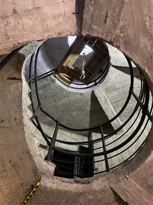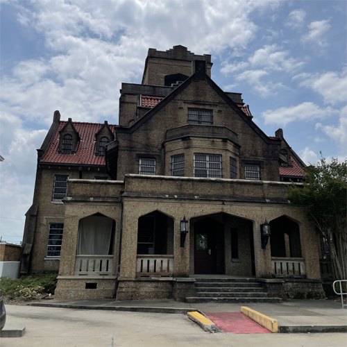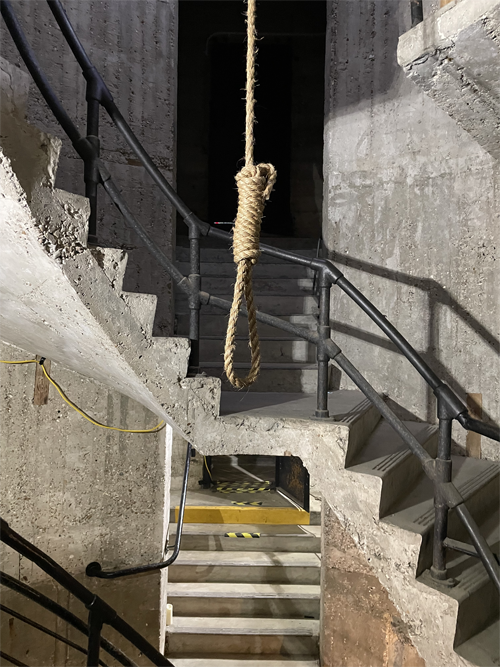 The Hanging JailDeRidder's Gothic Jail, built in 1915, got its name from the “Collegiate Gothic” architectural style of the building which was popular at the time: pointed Tudor arches, dormers and bay windows. It got its more popular name "The Hanging Jail" after a brutal murder and double hanging in 1928. The Beauregard Parish Courthouse and the jail, which are next door to each other, were designed by Stevens-Nelson of New Orleans as a non-matching pair, and completed around the same time at a cost of $168,000. There is a lighted tunnel connecting the two buildings. It was incorporated into the design to facilitate the transfer of accused or prisoners to and from the jail to stand trial while maintaining public safety. A 1923 article in Popular Mechanics compared the building to a “Grand Mansion” rather than a jailhouse. There are three floors. The bottom floor housed the Jailer’s quarters, where he lived with his family, as well as his office and a temporary holding cell for prisoners not destined for a longer stay. The second and third floors each hold four cells, all opening out onto the spiral staircase that sits in the center of the building. Each cell features a separate bathroom and skylights on the top floor of the building - amenities that were unheard of at the time. However, the jail still maintained some standard practices of the era. Hard steel bunks accommodated about a dozen inmates in each cell. It was no surprise to learn that the place earns a good living as a haunted house. If it wasn't creepy enough with its cramped central spiral staircase and each room guarded by heavy steel or barred doors, and / or a large cage in the middle of the room, the fact that all the plaster and insulation had been removed to eliminate asbestos and other contaminates so every floor, wall and ceiling was just bare concrete finished the job nicely. Oh and the hangman's noose still hanging in the middle of the staircase.
