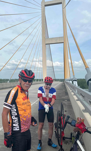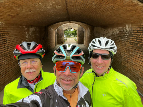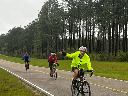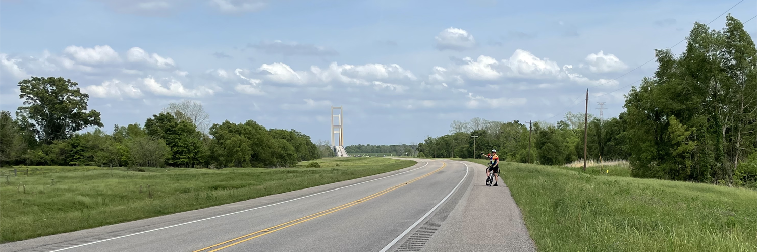Dave reminds me in which direction St Augustine lies: across the Mississippi bridge. He's nearly hidden by Kevin who is having a slow day, slumming it with me while the rest of the big dogs and the rest of the B-Team took the Century option.