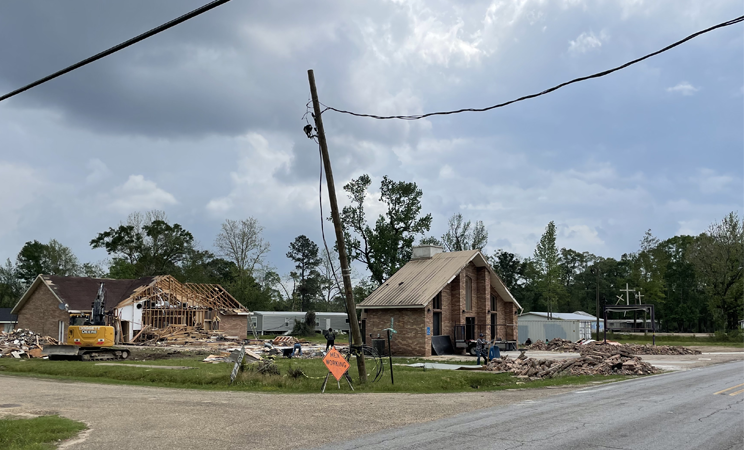 We were lunching under the awning of Brown's Chapel Missionary Baptist Church in Tangipahoa when a Police cruiser pulled up. Chief of Police Darrell Martin stepped out, introduced himself and his passenger, the Lady Mayor, and then ever so politely enquired about our business. Having ascertained our innocent purpose, Chief Martin declared that he was also a Deacon of the church, so he opened it up so we could use the bathrooms and the AC which was blasting away in the empty church. Not what I was expecting. He and the mayor then regaled us with stories of the tornado that hit the town six weeks before, obliterating three mobile homes the space for which we could see from where we sat, and demolishing the Quinn Chapel AME Church which we passed shortly after lunch. Mercifully nobody was killed but even all these weeks later, the visceral effect of seeing such devastation with our own eyes instead of through the anonymizing and numbing filter of a TV screen was sobering to say the least. You may have noticed that I have stopped bitching about Billy-Bob. I do not know if someone said something to him or not, but over the last couple of days he has consistently been ready to leave when he is supposed to and it has made a massive difference to me and I suspect to others too. He's also less distracted on the road, so stops less frequently, which all adds up to a much tighter team. I congratulated/thanked him as I drafted passed him on one stretch. |