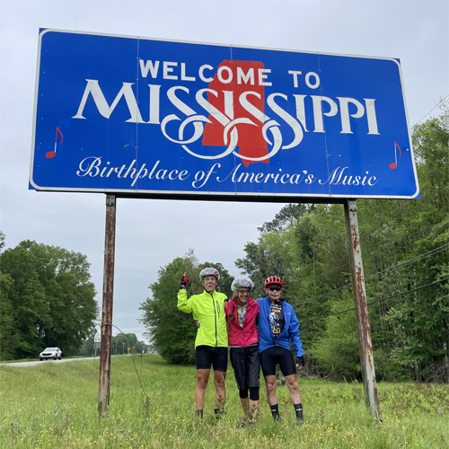 Friday April 7 Amite (Franklinton) LA to Wiggins MS Elevation: 262ftTemp: 62f - 73f Ascent: 2969 ft Distance: 84 MilesSo a weird start because we had to be shipped back to the Franklinton starting line. Although it had clearly rained steadily overnight by some miracle we had wet roads all morning but no actual wet. There is a (large) Baptist church every few miles. I can’t figure out a) why we see twenty churches for every school we see, b) why their graveyards are so small (never more than an acre) especially as the churches themselves could easily hold a 2-500-strong congregation. |