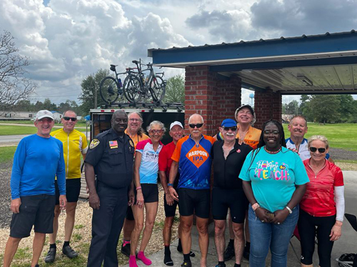Betsy's blog does a wonderful job describing today's ride, so I'll hand over to her. "We started our journey across Louisiana in earnest today. We covered 78 miles and 855 ft of elevation, which translates to more pancake-flat roads. The Louisiana countryside is not as littered with wildflowers as Texas, but the wetlands we passed through featured the most beautiful shades of green. We passed swamps, lush wetland grasses, flooded fields with crawfish traps, and bright green rice paddies.