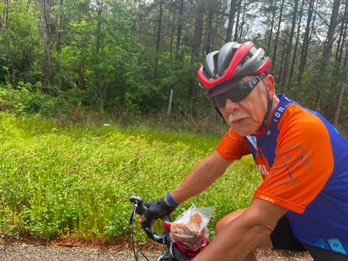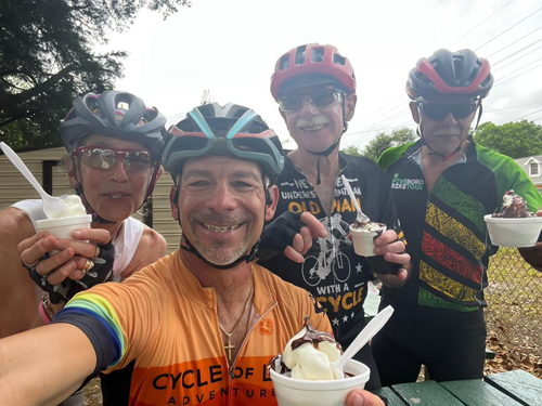 Bobby's cycling skills were legendary. He would hang at the back where he was supposed to be, then sprint on ahead fast enough to catch the leaders, then circle back to coast along with the caboose again. Oh, and meanwhile he was taking video of everyone as he went passed, or he let them come passed. So no surprise then that as he was tailing the B-Team into Ville Platte he managed to simultaneously use his phone to locate the only ice-cream store in town, and lead us half a mile off route to the target: Frosty Inn.