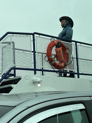 Several of us stayed outside for our own reasons. Leave it to Bill to stand in the coldest, windiest spot. Well that is until Bobby and I who were sheltering nearer the van were completely drenched by a rogue wave. That still beat sitting in the rocking van, at least as far as I was concerned. I was turning a little green just thinking about it.
