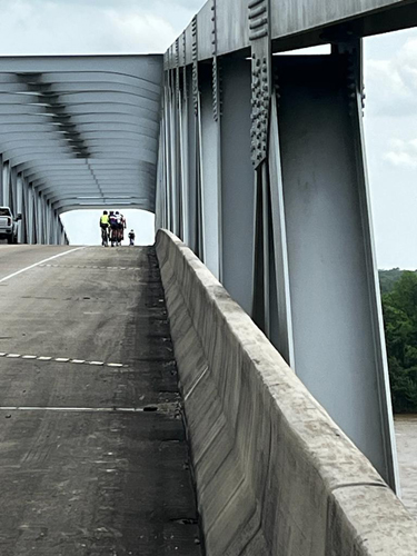 On a trip like this many of the bridges did represent important milestones. You are either east or west of the Colorado, Rio Grande, Pecos, or Mississippi. I guess you can be north or south of the Rio Grande too, though that puts you into a whole different category that we had no intention to explore. But let's face it: much as I looked forward to each and every one of them, most bridges suck and a significant number of them are downright dangerous. Windy, high, narrow, badly maintained, several were so bad that the sag wagon had to provide cover so we could take up the whole lane. The first of those is coming right up.